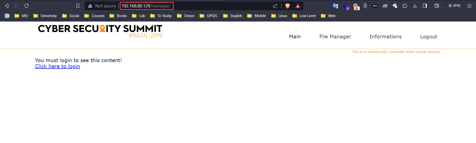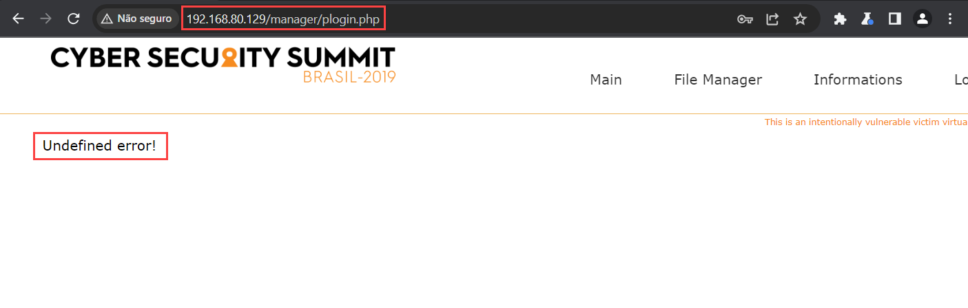 Dessa forma, foi possível identificar o diretório “/manager”, e acessando esse endereço foi identificado um local para realização de login na aplicação.
