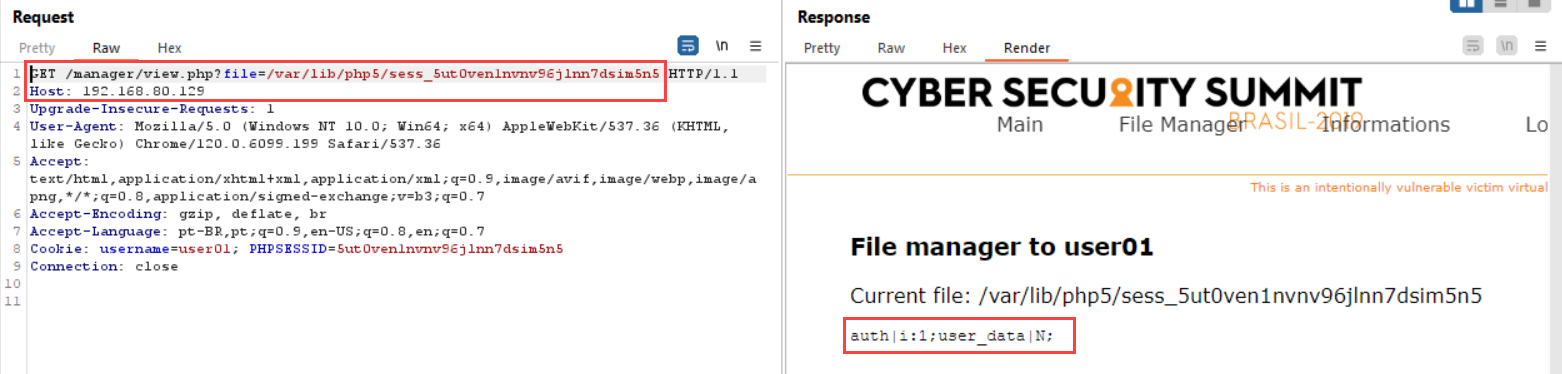 Aproveitando do LFI encontrado anteriormente, foi realizado a tentativa de leitura do arquivo criado para a sessão atual.