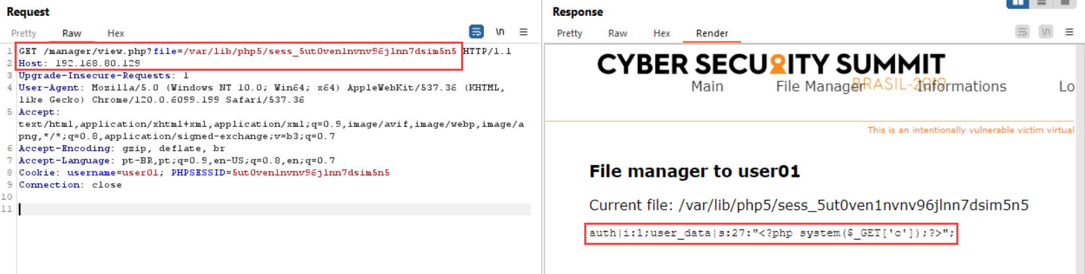 A função include do PHP é responsável por incluir arquivos e interpretar o seu conteúdo. Sabendo que esse caminho está sendo passado através do cookie iniciou-se o processo para tentar identificar alguma forma de salvar ou criar arquivos no servidor, para que posteriormente ele pudesse ser interpretado por essa função.