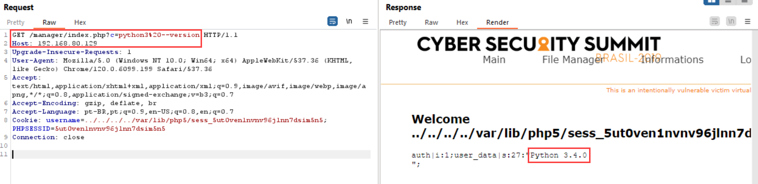 Dessa forma, foi possível executar comandos no servidor. Aproveitando essa funcionalidade, foi verificado se o servidor possuía o Python instalado e qual a sua versão.