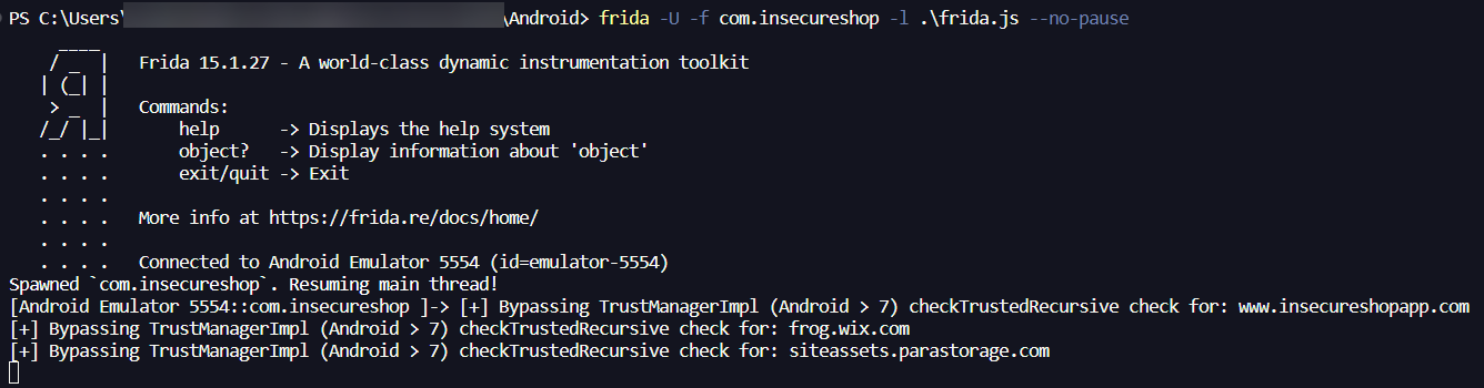 Foi possível realizar o bypass da proteção utilizando o seguinte script frida público: