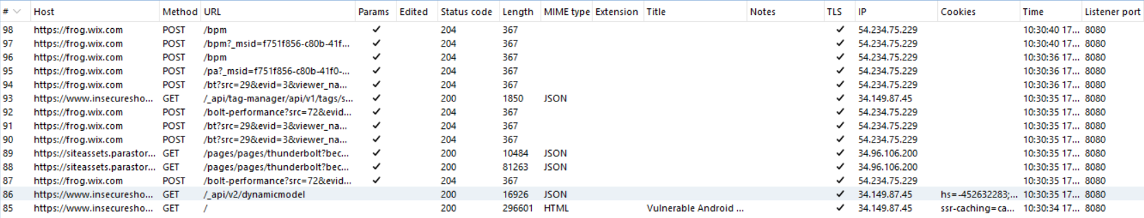 Também foi possível interceptar as requisições realizadas pelo aplicativo.