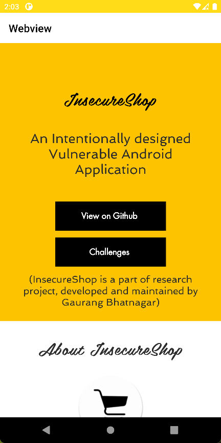 InsecureShop é um aplicativo Android projetado para ser intencionalmente vulnerável. O aplicativo serve como uma plataforma para testar suas habilidades de pentesting no Android.