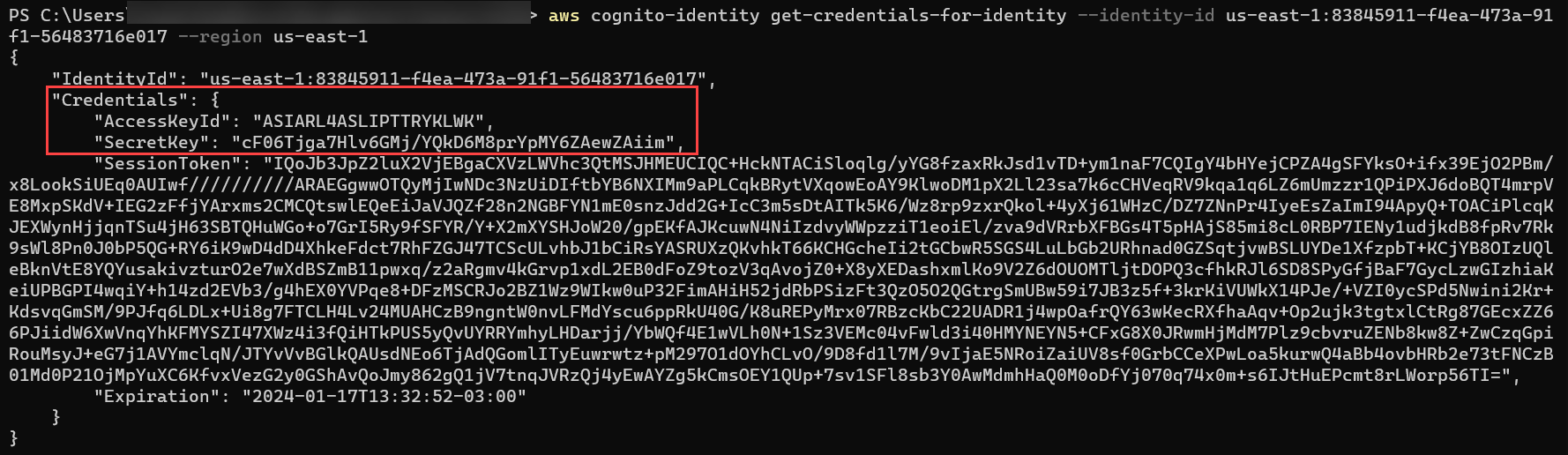 Com a informação encontrada, é possível realizar uma consulta e descobrir o Identity ID da acesso a AWS.