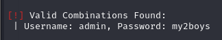 Para obter acesso ao painel da aplicação, foi realizado um novo ataque de brute force