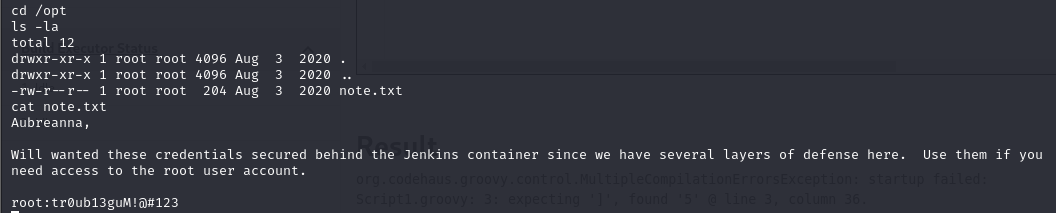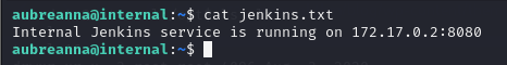 Após pegar a flag encontrei outra informação importante dentro do arquivo “jenkins.txt”. Nesse arquivo foi informado que existe um Jenkins rodando em um endereço da rede interna