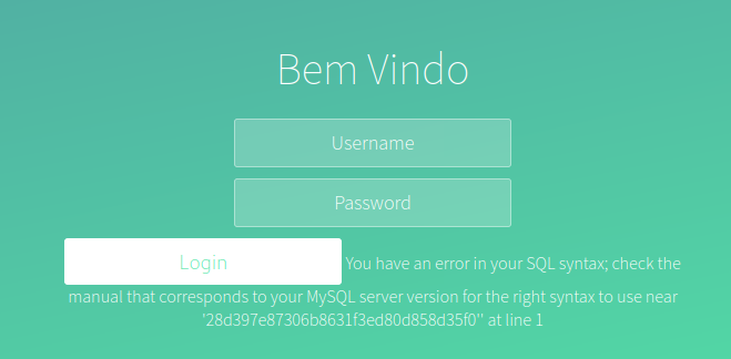 Com o intuito de testar o formulário de login enviei como nome de usuário e senha o caracter “\” para ver como a aplicação iria se comportar e esse foi o resultado: