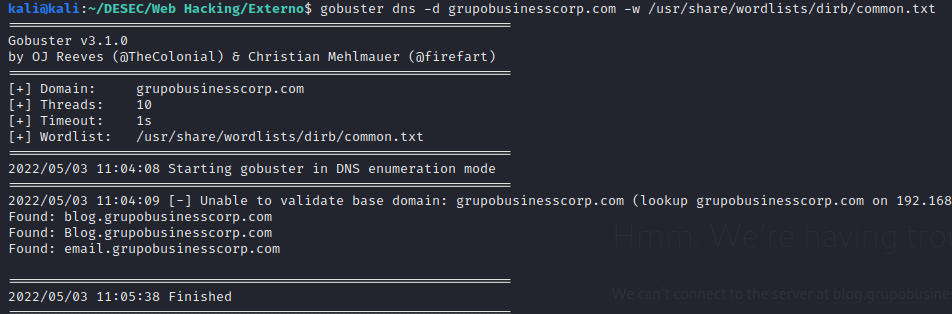 Os subdominios econtrados não possuem nenhum conteúdo que seja importante, então vou seguir e enumerar alguns diretórios e arquivos nesses subdominios