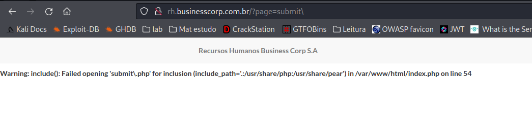 Entrei na aba para enviar o curriculo e acrescentei uma “\” ao final do parametro que estava sendo enviado via GET e a aplicação retornou um erro, mostrando que o parametro está vulnerável