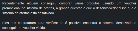 Levando em consideração o objetivo do lab, o diretório que me chamou a atenção foi o /promo, e ao acessar o diretório podemos ver uma página com um formulário para enviar o voucher da promoção mas que está desativado