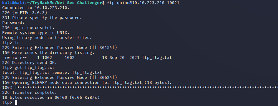 Agora descobri a senha para acessar o FTP, vou me logar e pegar a flag.