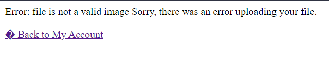 Apesar da descrição do lab falar que a aplicação só aceita arquivos que são genuinamente imagens, resolvi fazer uma validação para confirmar que o filtro de arquivos estava funcionando, para isso, tentei enviar um arquivo PHP e como esperado a aplicação retornou um erro