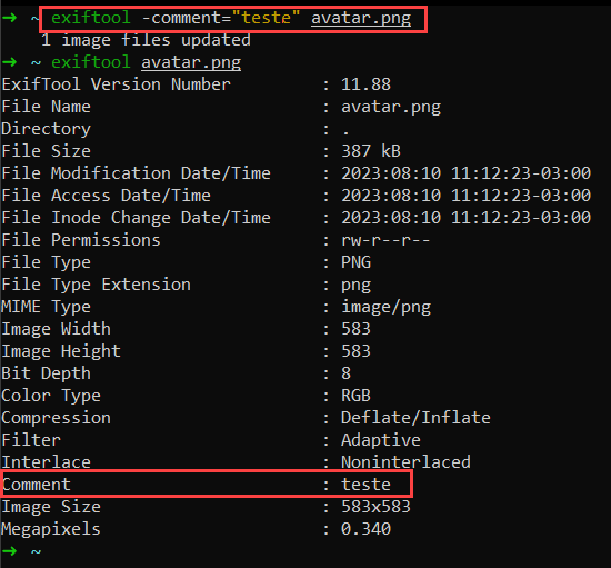 Como só podemos enviar uma imagem e ao mesmo tempo precisamos executar um código em PHP é preciso criar um arquivo poliglota que seja ao mesmo tempo esses dois tipos de arquivo. Para isso, utilizei a ferramenta “exiftool” para adicionar um novo campo nos metadados do arquivo de imagem