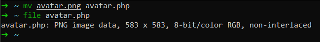 Apesar de realizar a alteração da extensão do arquivo para .php ele continua sendo reconhecido como um arquivo PNG válido, por causa de sua assinatura. Por ser um arquivo PNG e por conter um código que será executado em PHP esse arquivo é considerado um arquivo poliglota