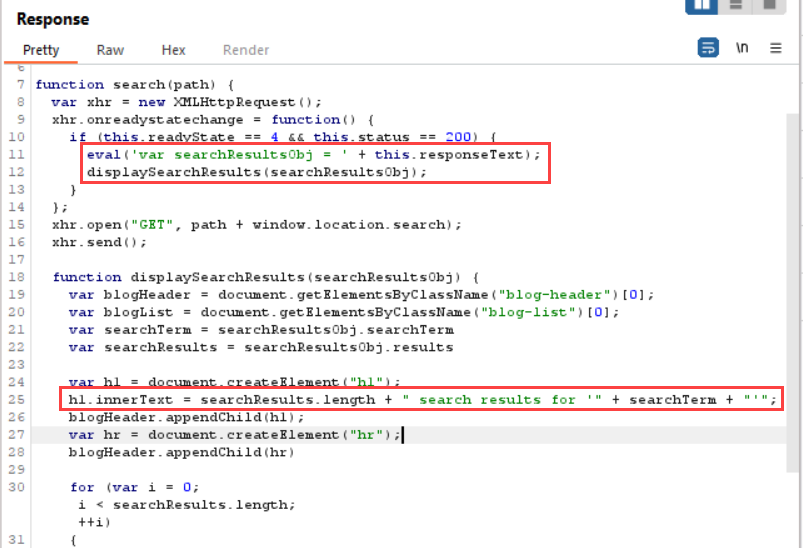 Analisando o conteúdo desse arquivo, é possível descobrir que o valor enviado é recebido em uma função “eval” e depois o valor é refletido em uma tag “h1”