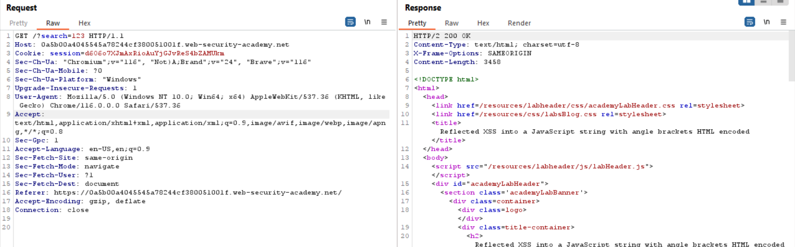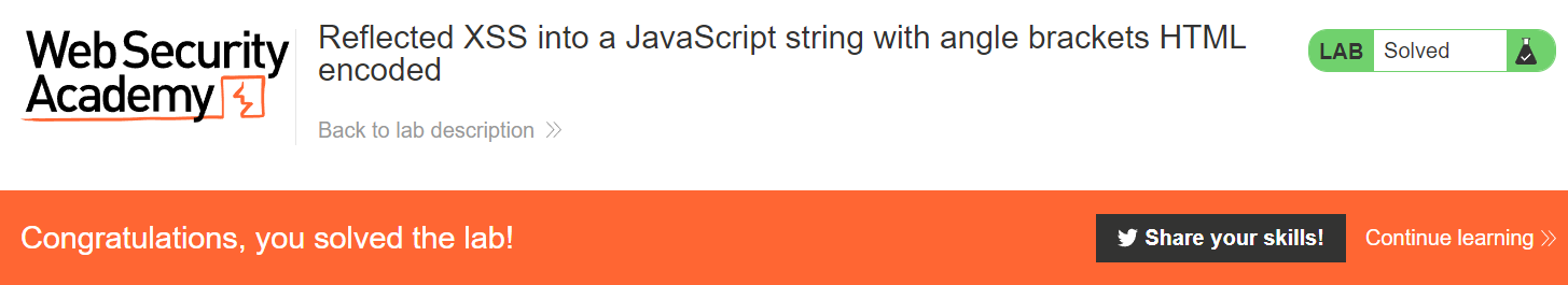 Reflected XSS into a JavaScript string with angle brackets HTML encoded