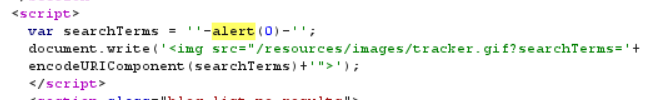 O segundo lugar, está dentro de uma tag “script”. Então enviei uma nova consulta, dessa vez passando a função alert